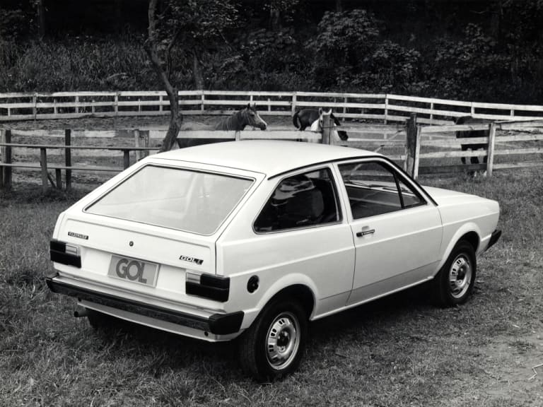 Oui, la Gol débutera sa carrière en 1980 avec un moteur de Cox, le vénérable 1.3 refroidi par air monté cette fois-ci à l’avant. D’abord disponible uniquement en 3 portes (façon Hatchback), elle sera ensuite proposée en version 2 portes (1981) sous le nom de Voyage. En 1982 viendra la version 3 portes « Station Wagon » avec un hayon vertical comme sur la Polo (elle prendra le nom de Parati), puis en 1982 une version 4 portes 3 volumes appelée elle aussi Voyage. Il y aura même une version pick up appelée Saveiro. A l’étranger, on trouvera aussi les noms de Fox donc (USA), et surtout Gacel et Senda pour les versions argentines de la Voyage produites dans l’usine Autolatina de Buenos Aires.
