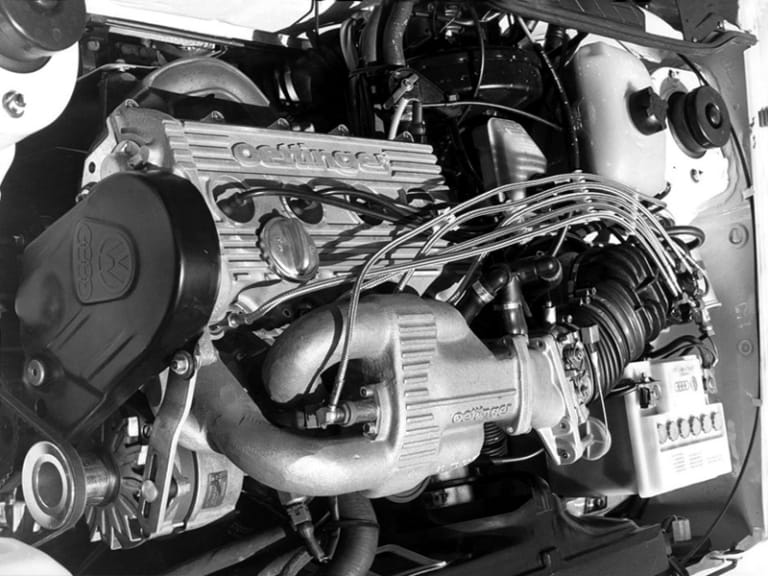 Depuis 1975, la Golf GTI fait des étincelles, créant de toutes pièces un marché, et amuse ses propriétaires avec sa tenue de route et son 1,6 litre de 110 chevaux. Mais certains chez VAG France ont dû se rendre compte qu’un tel châssis méritait encore plus de canassons. C’est donc vers le préparateur reconnu outre-Rhin Oettinger que VAG France se tourne, le mettant au défi de transformer le 8 soupapes en 16 soupapes, et d’offrir couple, puissance et muscle à la GTI de base.