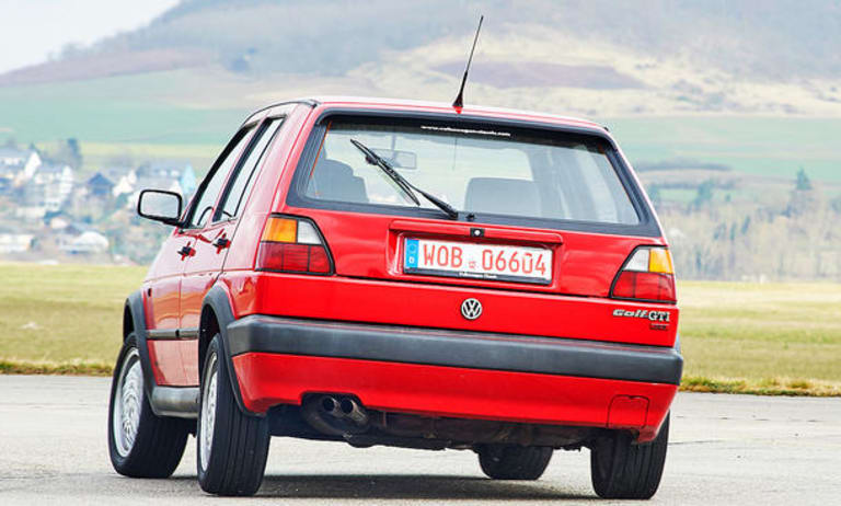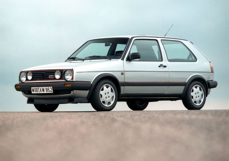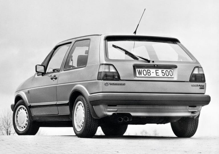 Succéder à la première Golf n’était pas une sinécure, comme c’est d’ailleurs le cas pour tout modèle à succès. La GTI ne faisait pas exception à la règle et c’est peu dire que VW était attendu au tournant par une concurrence qui, depuis 1976, n’était pas demeurée inactive, en Allemagne, en Italie et bien entendu en France où Peugeot, que personne n’attendait à telle fête, fourbissait sa 205. Et lorsque la Golf II fut révélée officiellement, à l’automne de 1983, les réactions furent pour le moins mitigées. Bien sûr, personne ne s’attendait à ce que le centre de style VW, placé sous la direction de Herbert Schäfer, rééditât un coup de génie comparable à celui de Giorgetto Giugiaro dix ans plus tôt mais, il faut bien en convenir, la nouvelle Golf déçut un certain nombre d’observateurs – en particulier de ce côté-ci du Rhin, où on lui reprocha principalement son embonpoint et certaines lourdeurs de style. Car, c’est vrai, l’auto avait généreusement crû dans toutes les dimensions (plus 28 centimètres en longueur, plus 5 centimètres en largeur, plus 2 centimètres en hauteur), à quoi s’ajoutait fort logiquement un poids lui aussi en sensible augmentation. Volkswagen initiait ainsi un mouvement qui ne s’est guère inversé depuis lors, donnant naissance à des voitures toujours plus encombrantes et toujours plus lourdes, aucun segment de marché n’étant épargné par cette tendance – chacun a en tête ces saisissants comparatifs esthétiques où l’on positionne par exemple une Porsche 911 de 1964 aux côtés d’une 992… Dans le cas de la Golf, et en particulier de la GTI, c’est sous le capot que le bât blessait en 1984, car le moteur ayant été repris pratiquement tel quel d’un modèle à l’autre, le rapport poids/puissance et les chronos en pâtissaient inévitablement, ce qui était tout de même ennuyeux pour la sportive de la gamme…
