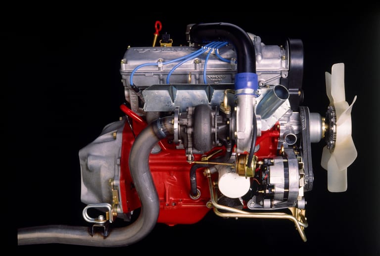 Ainsi dès 1980 la marque pimente sa paisible Volvo 240 en lançant la 240 turbo et en 1981 la 240 break Turbo. Partant de la 240 2.1 injection K-Jetronic code B21E de 123ch, les ingénieurs suédois y greffent un Turbo Garrett T3 passant au code B21ET et soufflant à 0,67 bar, amenant la puissance à 155ch à 5.500 tr/min pour un couple de 245 Nm à partir de 3.750 tr/min. Tout cela associé à une solide boîte mécanique 4 vitesses + 1 vitesse surmultipliée capable d’encaisser plus de 700 ch.