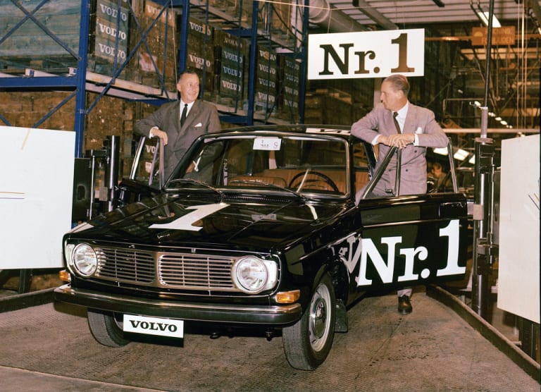A l’époque avec Volvo, pas la peine d’aller chercher très loin pour le nom de son futur modèle : ce sera 3 chiffres côte à côté, le 1er indiquant la série (1 pour première série), le 2ème le nombre de cylindres (4 ici), et le 3ème le nombre de porte (2 pour le coach, 4 pour la berline, et 5 pour le break). Vous l’avez ? Bref, c’est à l’été de l’année 1966 que commence la production de la 144 (la première du trio) dans l’usine de Torslandaverken.