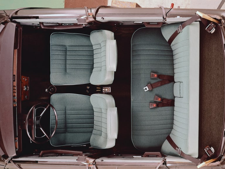 Etrangement, la 164, modèle 6 cylindres destiné à une clientèle plus luxueuse et qui apparaîtra deux ans après la 144 (on vous en reparlera bientôt), ne restera pas dans la mémoire collective : normal, avec sa calandre « à l’ancienne » et ses phares ronds, elle faisait encore tellement 60’s, quand la 144 respirait les années 70 avant l’heure. Avoir l’air moderne suffit de peu de choses. Mais revenons à nos moutons.