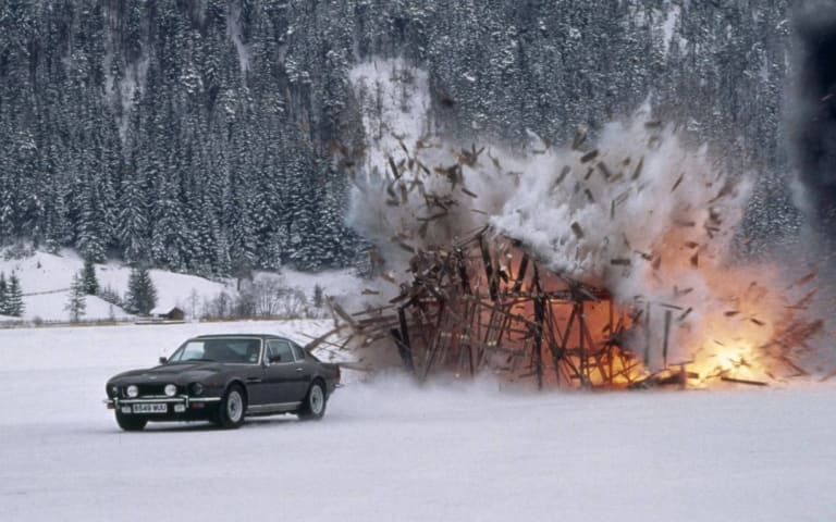 Dans The Living Daylights, l’AM V8 est généreusement pourvue en gadgets et adresse de sympathiques clins d’œil à son ancêtre : lance-roquettes dissimulés derrière les phares antibrouillard, affichage tête haute, rayons laser dans les moyeux de roues, système de stabilisateurs rétractables permettant d’évoluer sur la glace et réacteur à l’arrière (autorisant des acrobaties rappelant furieusement la série américaine Knight Rider) : le tableau était complet – mais, comme de juste, l’affaire finit mal, Bond choisissant de faire exploser sa voiture après l’avoir plantée dans la neige. Nulle trace d’une Aston dans le film suivant, Licence to Kill, sorti en 1989, échec commercial et critique ayant de surcroît marqué la fin de l’ère Dalton. Après un hiatus de six années, Bond revient en 1995 dans GoldenEye sous les traits de Pierce Brosnan mais, cette fois, c’est avec BMW que les producteurs de la série ont conclu un accord. Trois films durant, 007 va ainsi rouler en roadster Z3, en berline 750iL E38 puis en Z8 avant de revenir à la raison, en 2002, en héritant d’une Aston Martin Vanquish finement présentée par John Cleese sous le nom de Vanish…