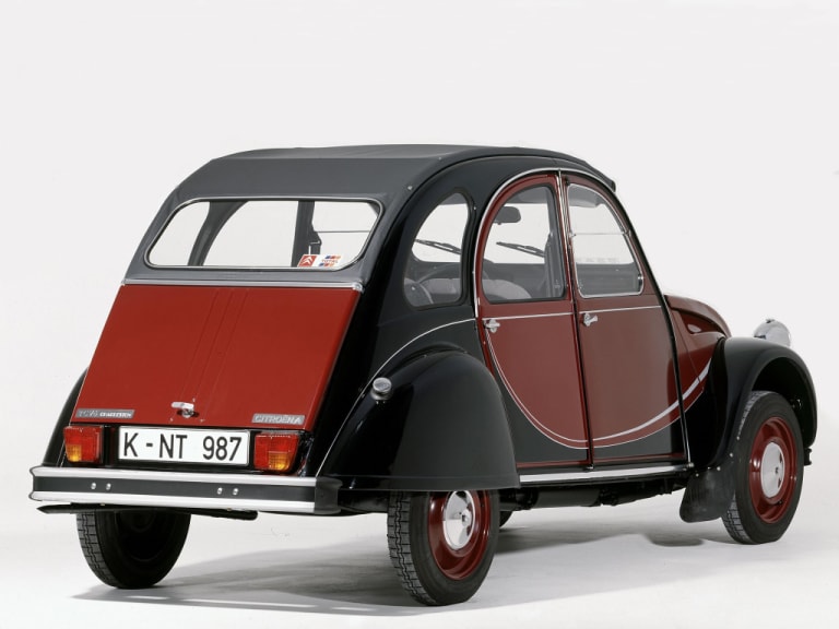 L’idée est simple : puisque la voiture semble un peu ringarde aux yeux du public, pourquoi ne pas jouer sur son côté rétro en l’accentuant encore un peu plus. Serge Gevin, le designer, va alors jouer avec les courbes de la Deuche pour évoquer le glorieux passé de Citroën. Les passages de roues deviennent noir, ainsi qu’une partie des flancs dans un dessin arrondi rappelant en même temps la Citroën Type A de 1919, les 5CV des années 20 et les Bugatti des années 30. La couleur Rouge Delage s’inspire du nuancier des voitures de l’époque, pour un résultat nostalgique du plus bel effet.