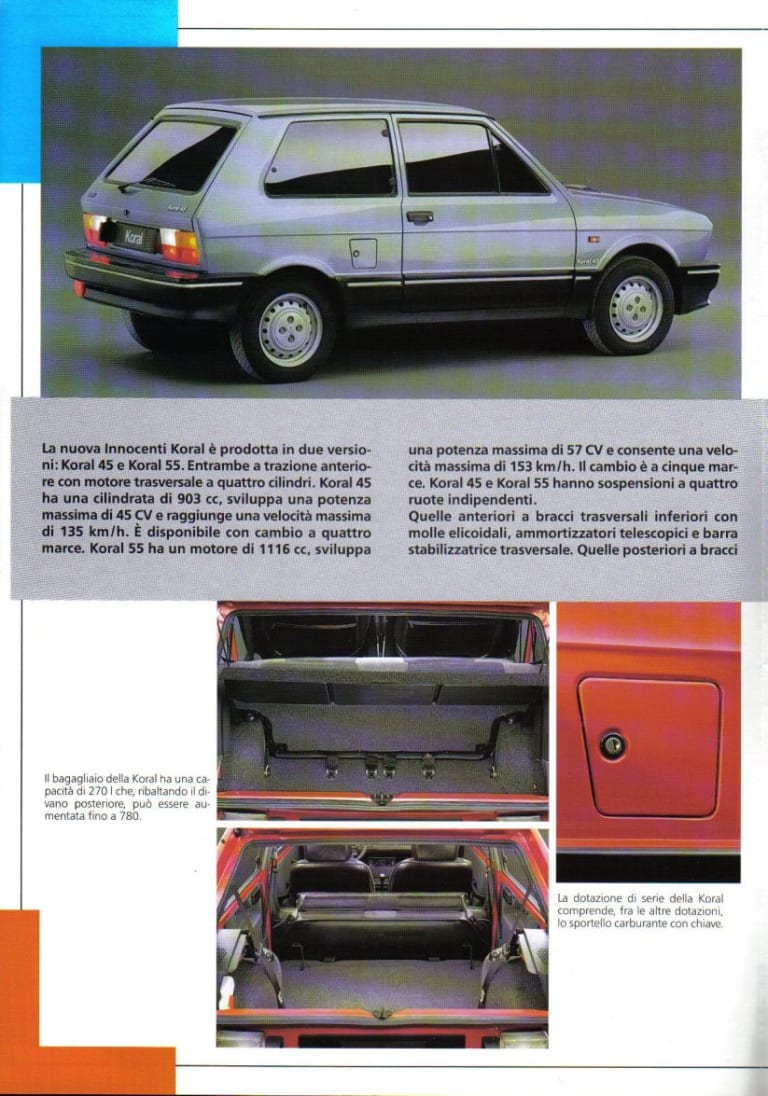 La vie du petit constructeur italien Innocenti n’a jamais été un long fleuve tranquille. Spécialisé dans la production de petits véhicules comme la Mini puis la Nuova Mini dans son usine de Lambrate (où fut fabriqué le célèbre scooter Lambretta), Innocenti dut sans cesse trouver de nouveaux propriétaires pour survivre. Passée sous la coupe de British Leyland Motors Corporation puis d’Alejandro de Tomaso dans les années 70, la marque milanaise finit sa course dans le giron de Fiat en 1990. La puissante société turinoise décide de lui assigner une nouvelle mission : devenir la griffe low-cost du groupe avec l’Innocenti Koral, une voiture serbe maquillée en italienne.