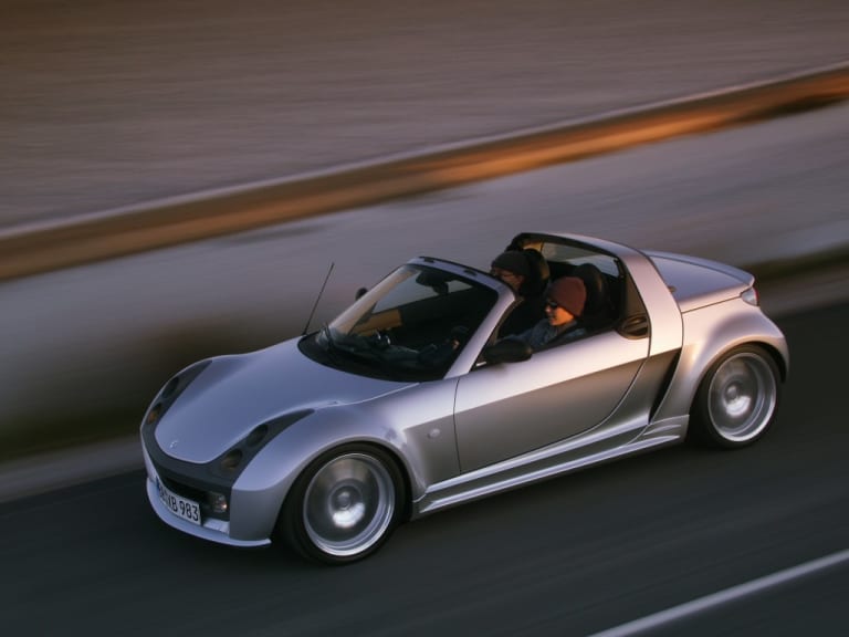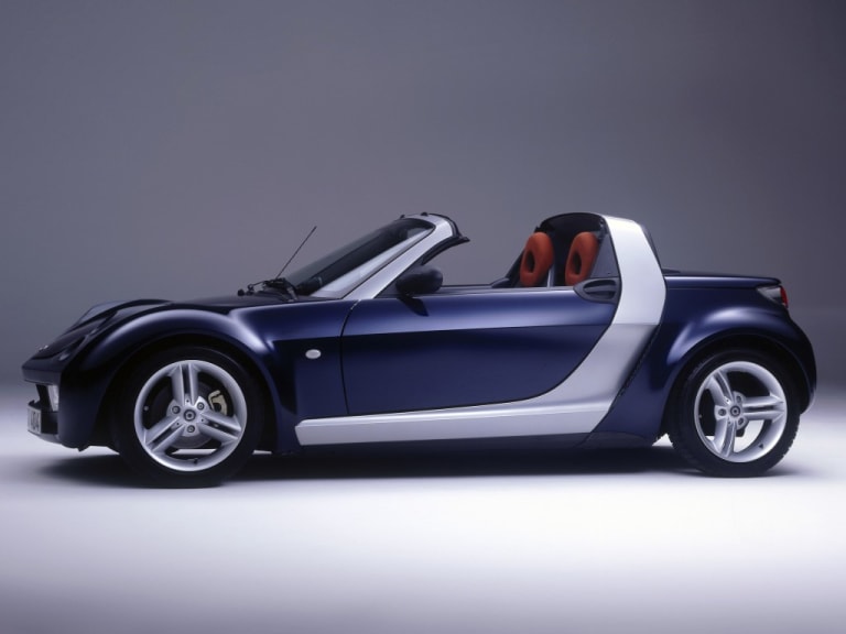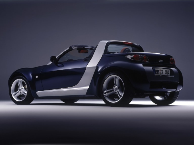 La décennie 90 voit le renouveau d’un segment qu’on croyait disparu au tout début des années 80, celui du roadster “à l’anglaise”. Flairant habilement le bon coup, le japonais Mazda s’approprie les codes des années 60 tout en modernisant le concept, lançant avec brio la Mazda MX5 (ou Miata sur certains marchés) en 1989. Dès lors, d’autres constructeurs emboîtent le pas de Mazda : MG revient avec sa F, Fiat lance la Barchetta, Alfa Romeo propose sa GTV 916 en version Spider, tandis que BMW propose une séduisante Z3. Du côté de chez Mercedes, on prépare la réponse en deux temps. La marque allemande propose d’abord sa vision du roadster avec un SLK haut de gamme à toit en dur rétractable électriquement (devançant Peugeot et sa 206 CC), puis profite de l’opportunité du lancement de Smart pour proposer un Roadster plus accessible et plus minimaliste.