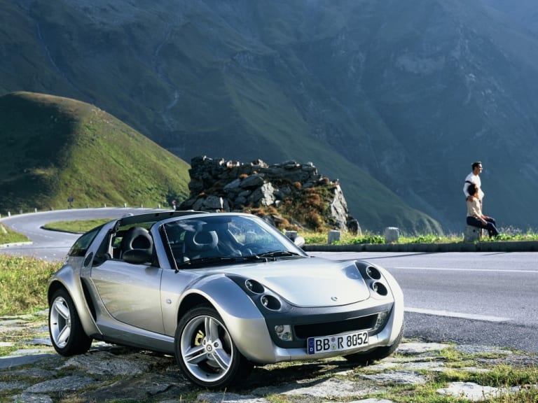 Dans les années 90, Mercedes reprend à son compte le projet initié par le charismatique patron de Swatch, Nicolas Hayek, et finit par accoucher d’une pétillante Smart ForTwo lancée en 1998 (et fabriquée en France). Le petit 3 cylindres de 698 cc placé en position arrière donne des idées aux ingénieurs : produire un roadster sur la même base, un véhicule de loisir offrant un vrai plaisir de conduire malgré une puissance relativement modeste, grâce notamment à sa légèreté. Pour nommer ce nouveau produit présenté officiellement en 2002, Smart en va pas aller très loin : ce sera tout simplement Roadster.