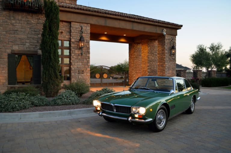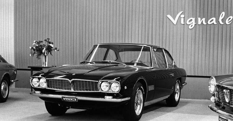 A l’origine, on trouve un prototype de grand coupé 4 places dessiné par Vignale et son styliste Virginio Vairo. Basé sur un châssis de 5000 GT, il en reprend le V8 4,7 litres et offre un style particulièrement réussi, tout à fait dans la tendance des grands coupés destinés à l’Amérique (on trouvera notamment quelques similitudes, notamment intérieures, avec la Jensen Interceptor, produite par Vignale à la même période). Ce proto doit être présenté au Salon de Turin 1965, mais pour l’heure, il stationne dans les ateliers de Modène. Or, au même moment, un riche mexicain du nom de Diaz Barroso apporte sa 5000 GT (rachetée en seconde main en 1961 au président du Mexique de l’époque Adolfo Lopez Mateos) chez Maserati suite à un grave accident : il s’agit presque d’une reconstruction.